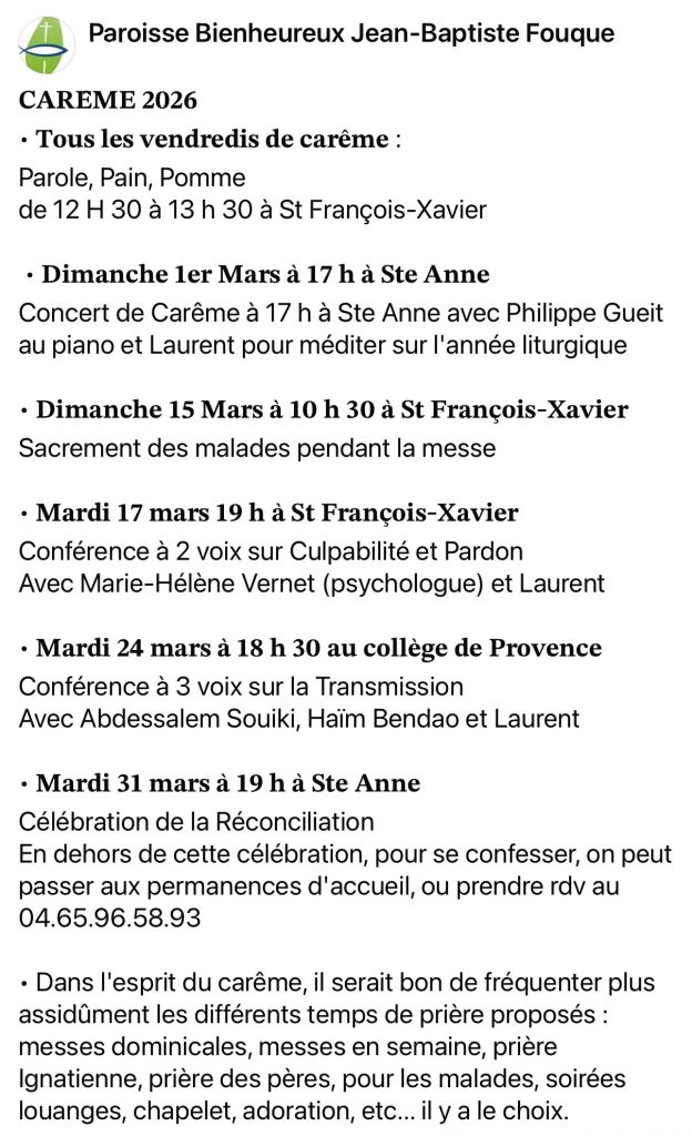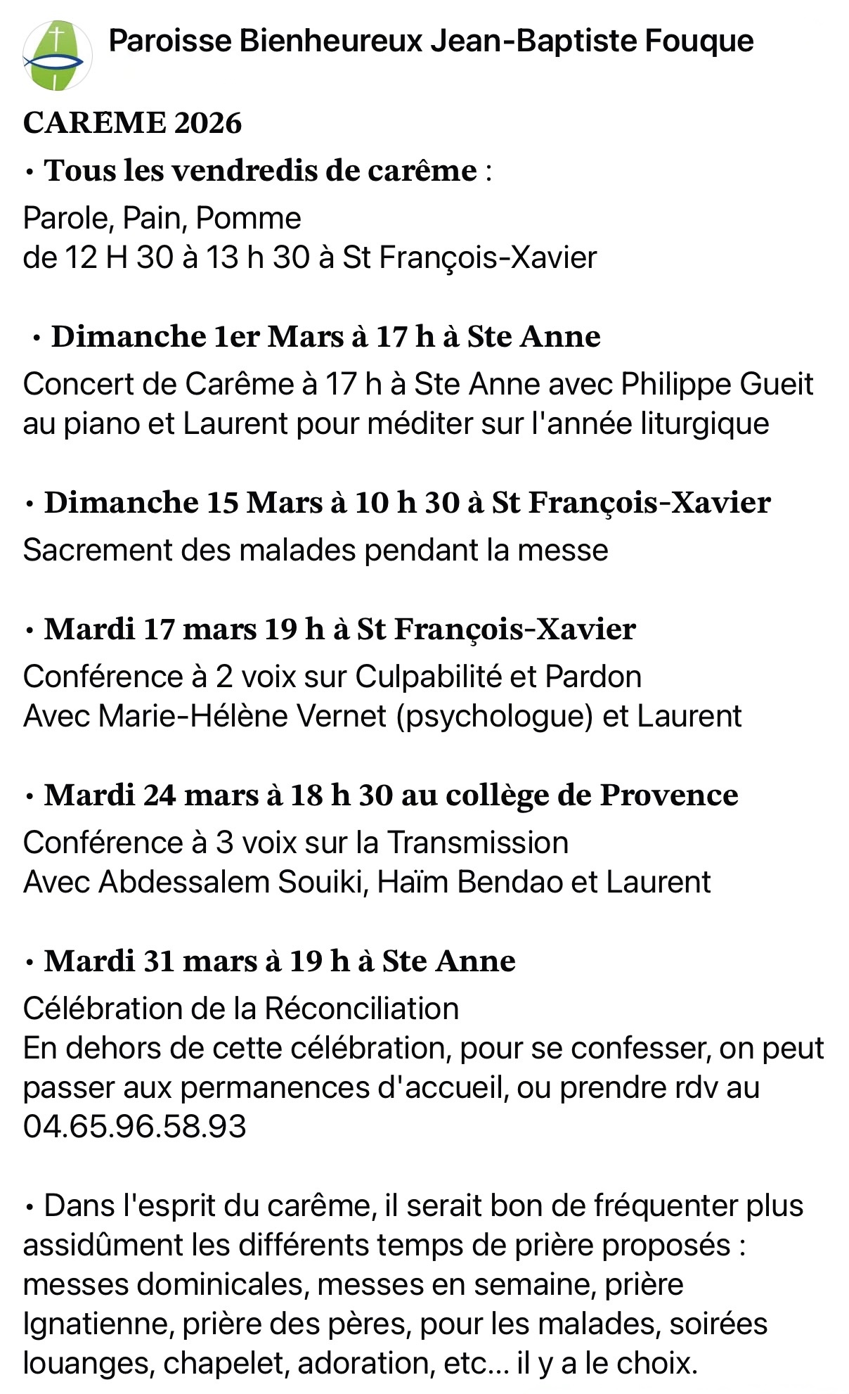 - Dimanche 1er mars à Saint-François-Xavier à 10h30