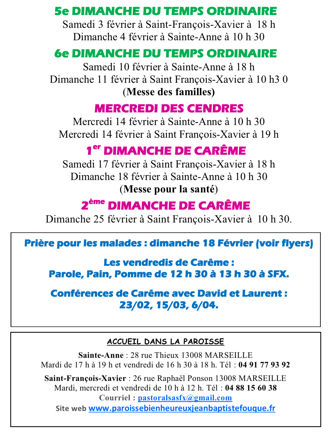 MESSES FEVRIER 2024 Publié le 28 janvier 2024 à 1290 × 1674 dans Sainte-Anne et Saint-François-Xavier